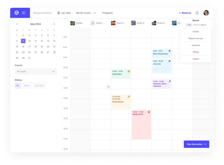 Each club, court, or amenity can have unique, customized rules and settings.
